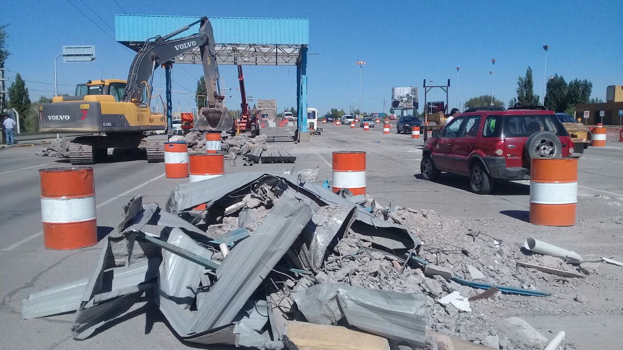 Los operarios de la empresa CN Sapag comenzaron desde el pasado jueves a remover y reordenar el sector adonde funcionó el peaje de los puentes carreteros que unen a Cipolletti con Neuquén. Las tareas comenzaron el 27 de febrero pasado y ya iniciaron con la ultima etapa que demandará aproximadamente 8 días, según estimaron desde Vialidad Nacional. El carril que va desde Neuquén a Cipolletti está parcialmente cortado, por lo que pidieron precaución y circular a bajas velocidades.