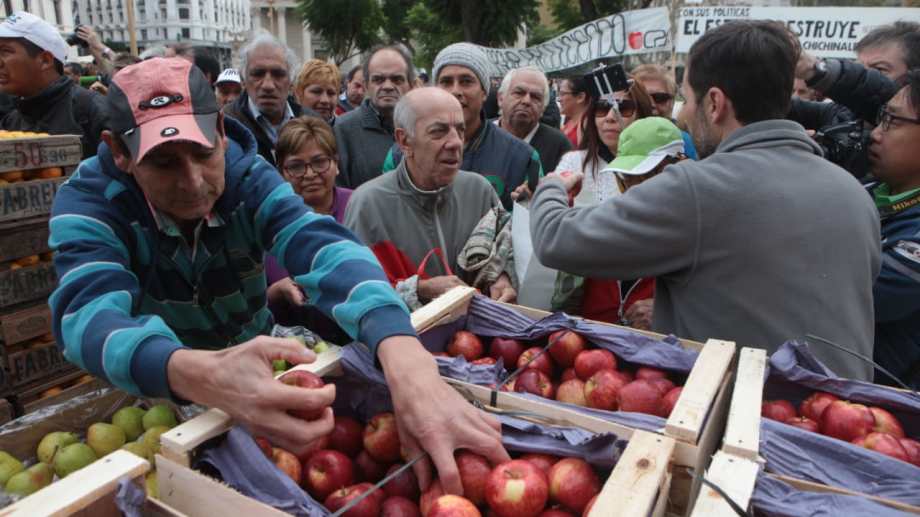 Desde la Federación de Productores de Río Negro y Neuquén llevaron 20.000 kilos de peras y manzanas para regalar en Capital Federal, a modo de protesta.