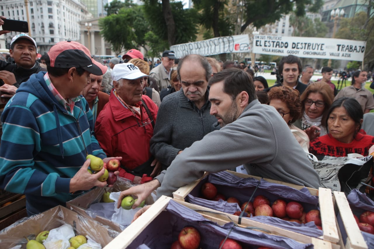 Los productores del Alto Valle y Neuquén se manfiestaron desde las 9,30 en la Plaza de Mayo con un “Frutazo”, buscando llamar la atención del gobierno nacional ante la crisis que está atravesando la actividad.