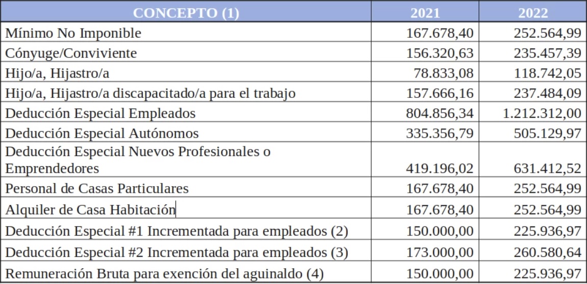 (1) Las deducciones personales de los trabajadores y jubilados que vivan en la zona patagónica se incrementan en un 22%.
