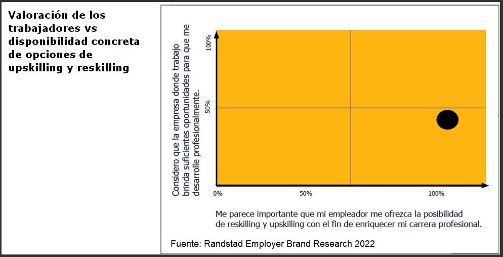 En el extremo opuesto, solo el 52% de los empleados que consideran realmente importante las oportunidades de upskilling y reskilling, afirman que su empleador las ofrece.