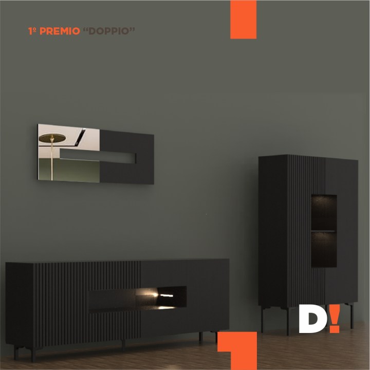 El 1er puesto, que incluye un premio de $ 150.000, fue para “Doppio” de Bruno Emanuel Bergesio (Huinca Renancó, Córdoba). Se trata de una línea de muebles para el living comedor, formada por dos vajilleros presentados en formato de gabinete y aparador junto a un espejo que sigue la línea de diseño. Están conformados en su totalidad por capa de melamina de 6 y 18 mm y pensados para un simple proceso de ensamblado.