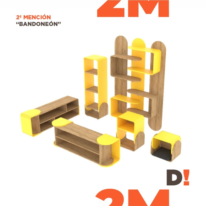 La segunda mención recayó en “Bandoneón” de Martín Gonzalo Juarez (ciudad de Córdoba), proyecto inspirado en el fuelle del instrumento homónimo. Es una línea de muebles listos para armar, como rac de TV, estanterías, mesa ratona, etc. Están hechos con melamina, sobre MDF de 18 mm. La elección, aquí, estuvo dada por su carácter contemporáneo que abre la viabilidad comercial, además de su lógica dimensional que puede adaptarse a diferentes circunstancias.