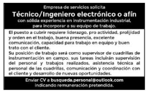 Empresa de servicios busca Técnico Ingeniero Electrónico