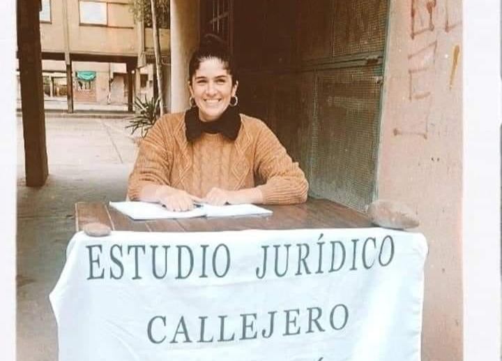 Dos sillas, una mesa, una bandera, parecía que eran el material suficiente. Pensaron el día, creyeron que el próximo jueves estaba bien, solo faltaban dos días para eso, así que le escribió a un chico que hace ploteos y de inmediato imprimió una bandera que reza: “Estudio Jurídico Callejero”. Ornella Antonelli, abogada.