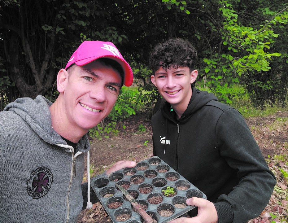 Castro, con su hijo Romeo, y los primeros plantines de tabaco.