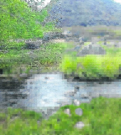 Allí, entre las rocas basálticas de las estribaciones de la meseta de Somuncurá, en cantarinas vertientes de agua (frías y cálidas), entre murmullos se va formando el arroyo Valcheta, que el paraje denominado La Horqueta junta sus aguas que vivifican los sembradíos de las chacras, hasta que se pierde en el bajo de Gualicho.