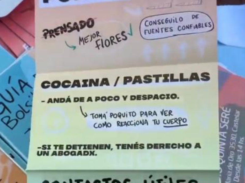 Un festival cultural, recreativo y gastronómico para toda la familia que tuvo lugar este domingo en el municipio de Morón, Buenos Aires, generó una fuerte polémica por la difusión de una campaña llevada adelante por la Dirección de Políticas para Juventudes. “Acordate de estos consejos: el porro conseguilo de fuentes confiables. Con la cocaína y las pastillas andá de a poco y despacio. Tomá poquito para que ver cómo reacciona tu cuerpo”, decía uno de los folletos que eran entregados en mano en un stand a quienes concurrieron a pasar el día allí.