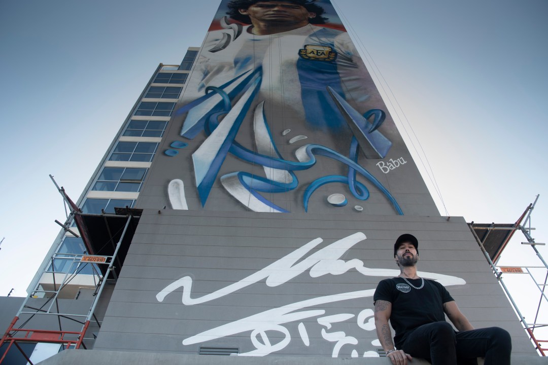 En el marco del cumpleaños del mejor futbolista de todos los tiempos, Diego Armando Maradona (1960-2020), se multiplican los homenajes que le rinde el arte argentino con el mural más grande que está pintando Martín Ron, en el barrio porteño de Constitución, o el que le dedica Maxi Bagnasco en un edificio de Ezeiza, donde lo podrán ver todas las personas que llegan a Buenos Aires en avión, además del santuario permanente que el ídolo tiene en el estadio Argentinos Juniors en La Paternal, el club que lo vio debutar en primera división.