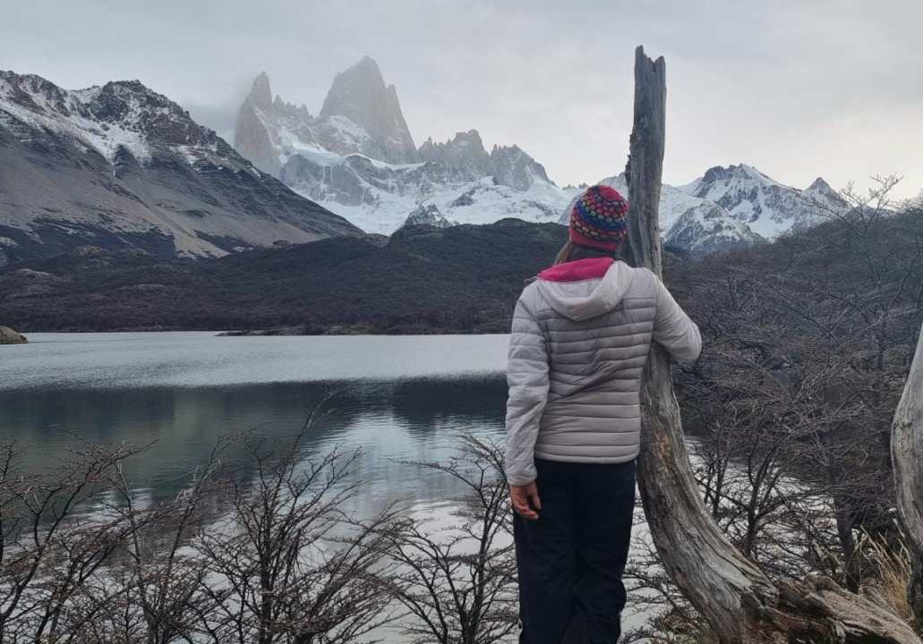 Desde el pueblo fueron 11 km ida y vuelta. Tardé hora y media en llegar a destino. Desde que inicié la caminata ya estaba sumergida en el bosque. El aire, los olores, los colores, todo es diferente ahí. De repente se abrió una especie de ventana y apareció ese espejo gigante donde el imponente Fitz Roy refleja su belleza. No podía dejar de tomar unos mates ahí, contemplando lo que la naturaleza le regalaba a mis ojos.