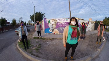 Distintas agrupaciones de la Comarca que trabajan para visibilizar la violencia de género decidieron realizar diferentes acciones y comenzaron en el mural que recuerda el femicidio de Silvia Vázquez Colque, en Winter y Álvaro Barros de la capital provincial.