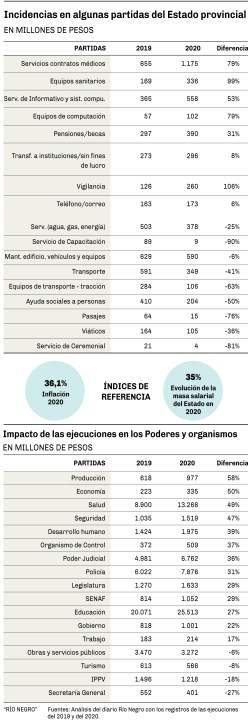 Esa incidencia salarial del 35% sirve de referencia de las erogaciones. Así, aquellos presupuestos monopolizados en Personal –como la Justicia, Legislatura y órganos de control– superan o rondan ese aumento anual, a pesar de subejecuciones de otras partidas por su inactividad presencial en gran parte del 2020.