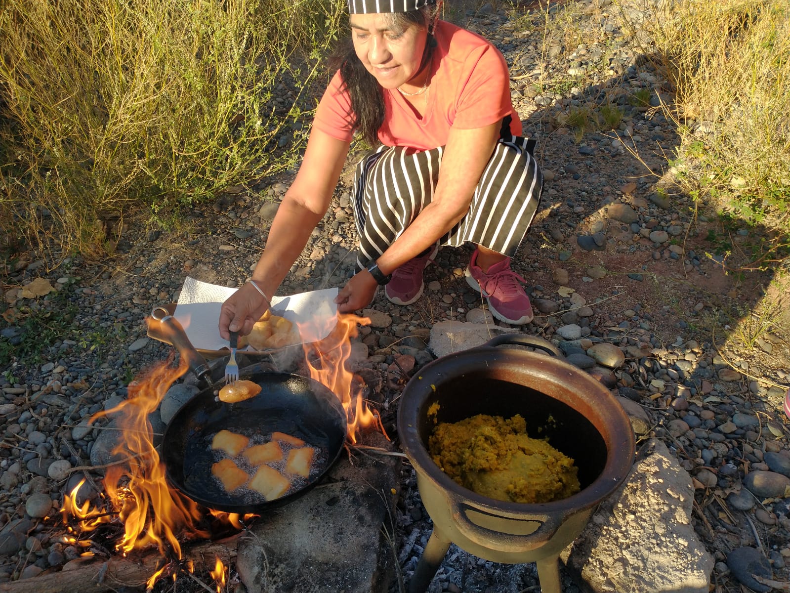 “Los sabores y las preparaciones que logramos tienen que ver con el encontrar el sabor del hogar, del humo, del fuego. Los sabores simples. Cada actividad se diseña con un menú distinto, según las situaciones que se van dando, sobretodo de acuerdo a la época del año. Hay un fuerte vínculo entre los sabores y el lugar donde une se encuentre. Al lado del río todo tiene otro sabor”, comparte Cecilia.