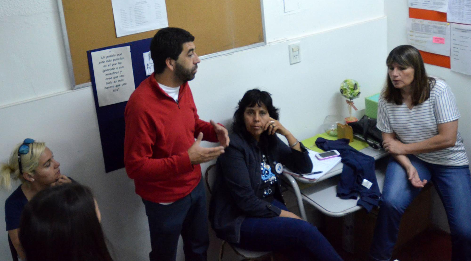 Los 15 docentes que dictan clases en el anexo del CENS 15 estuvieron esta mañana en la delegación cipoleña del CPE, para reunirse con la coordinadora de la delegación Lorena Montovio, quién no se encontraba en el lugar porque había viajado a Viedma. En su reemplazo los atendió Liliana Capurro, referente provincial de educación en contexto de encierro.