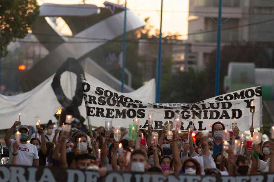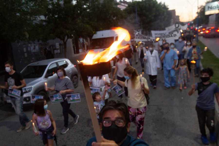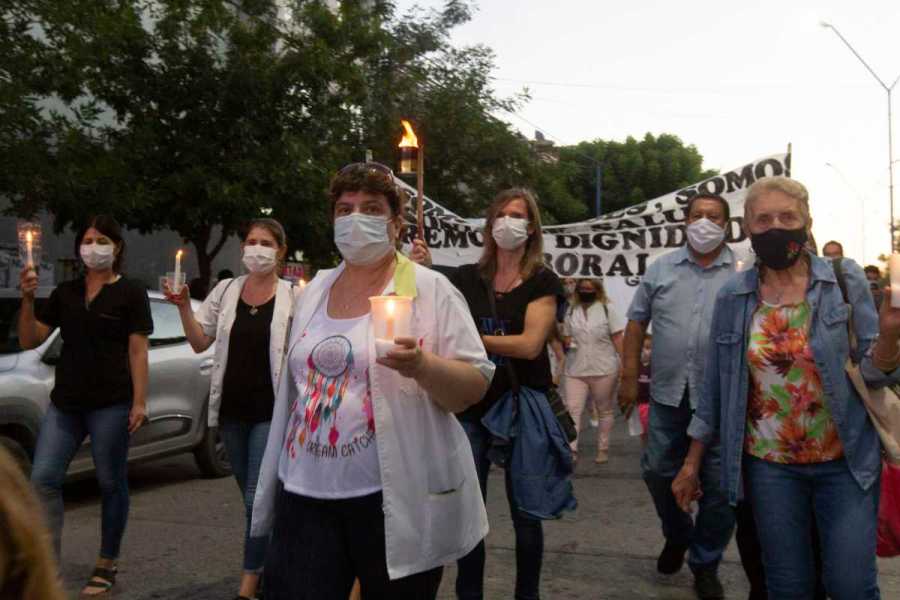 Una marcha de antorchas se hizo anoche en Roca, como anticipo de la reunión que los trabajadores autoconvocados de salud mantendrán hoy con el gobierno provincial y con los gremios ATE y UPCN.