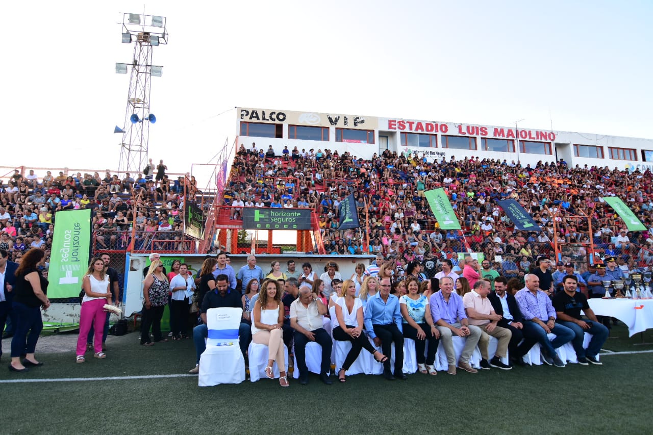 Está en marcha la 32° edición en Roca. Más de 2 mil personas estuvieron en el Luis Maiolino para el comienzo de la fiesta del fútbol infantil donde participan 64 equipos. Durará 10 días y se llevará adelante en 14 sedes. Del acto inaugural participaron el presidente de Deportivo Roca Gustavo López, la intendenta Soria, la gobernadora Carreras y los responsables de haber realizado el evento por primera vez hace más de tres décadas: Antonio D’Atilio y Mario Cesarín.