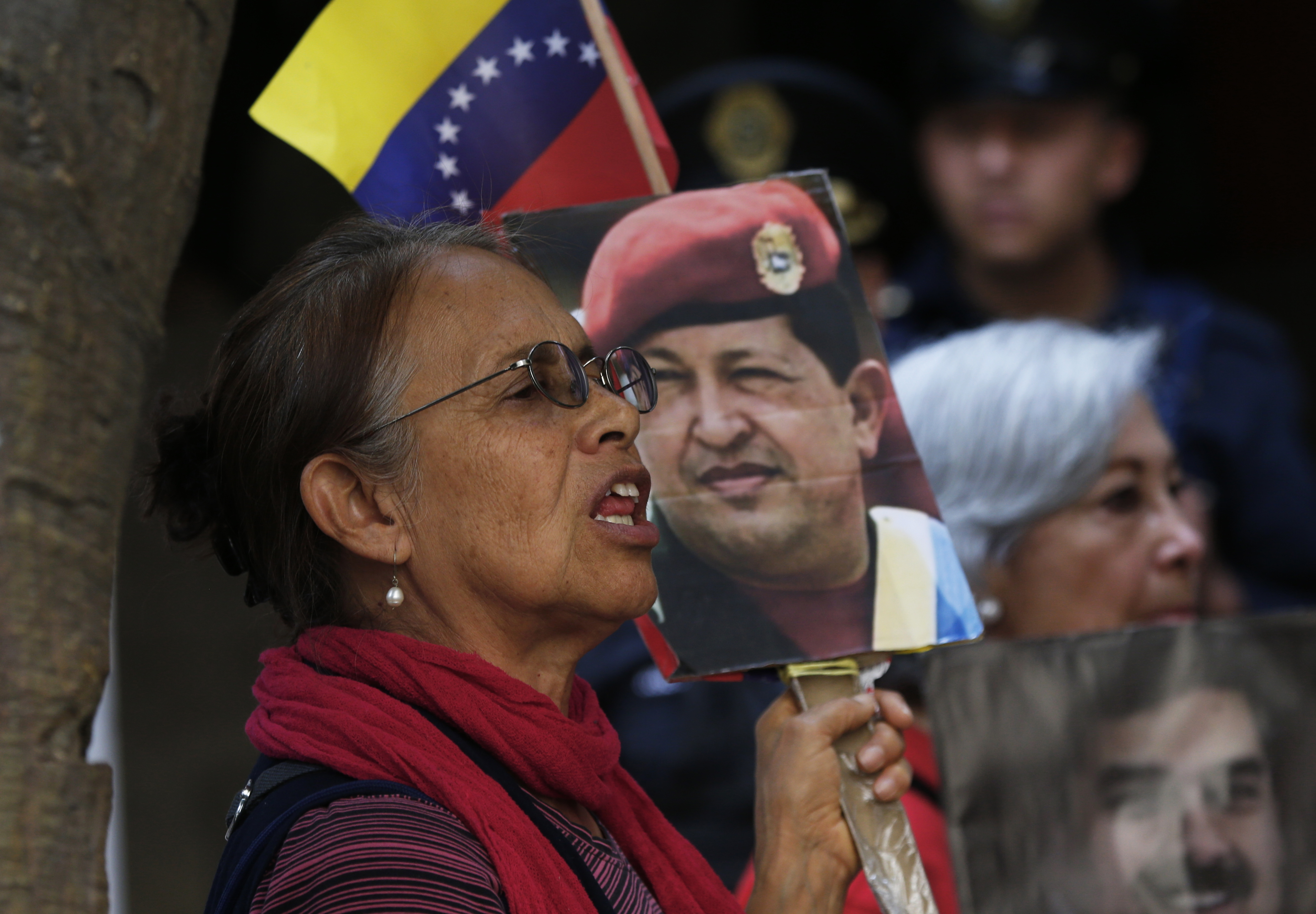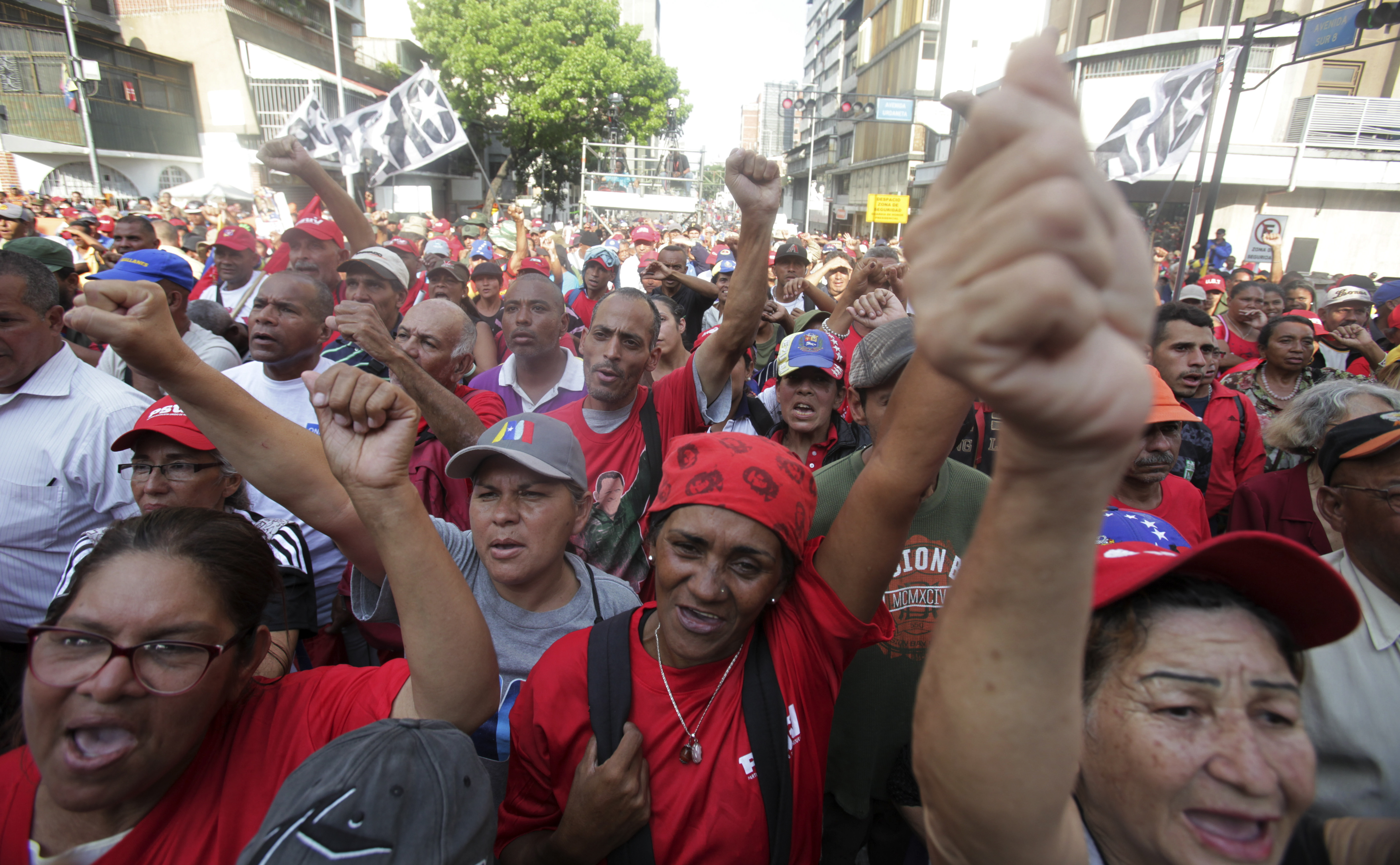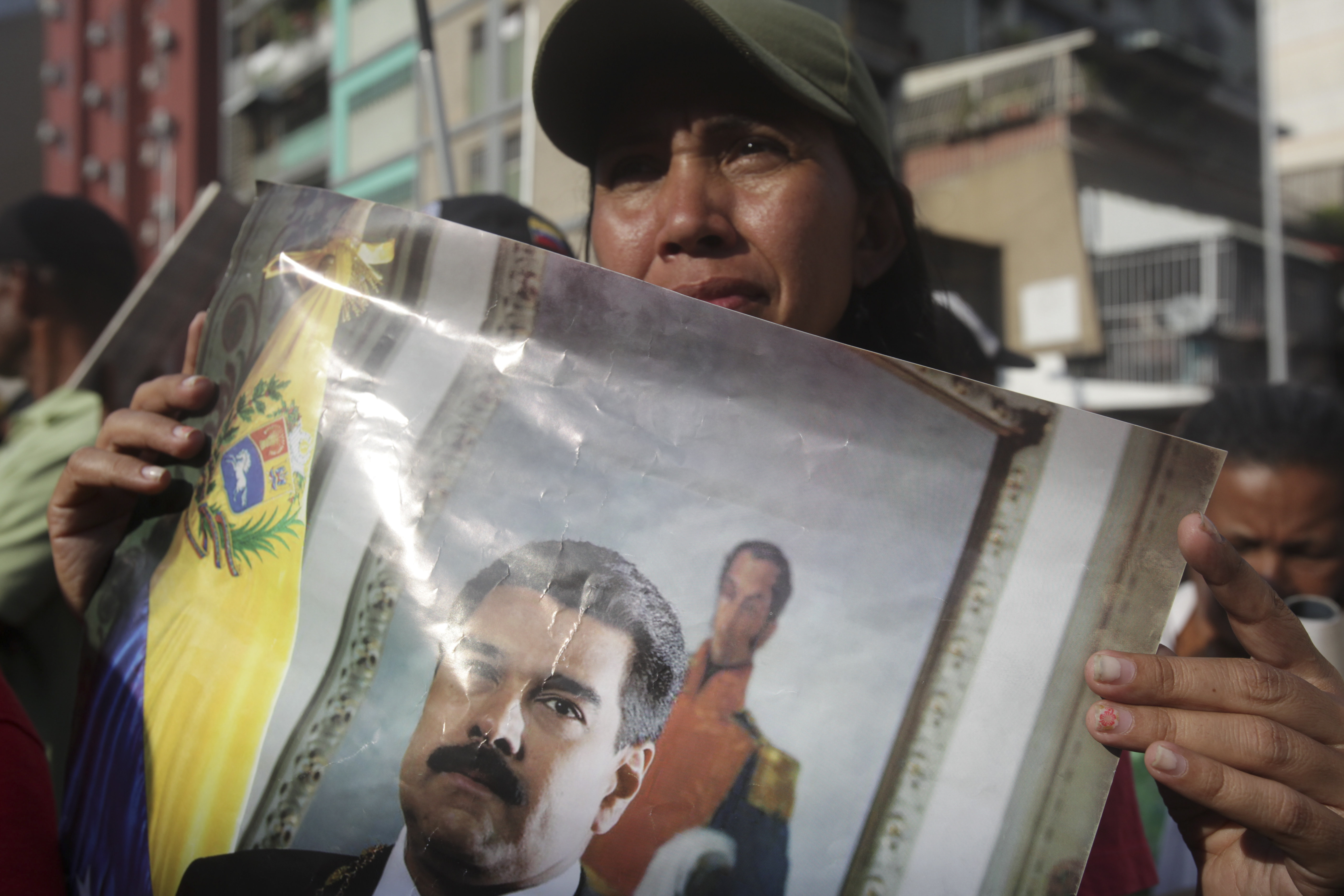Los partidarios del presidente de Venezuela, Nicolás Maduro, se reúnen en su apoyo fuera del palacio presidencial de Miraflores, durante un intento de levantamiento militar en Caracas. (Foto: Boris Vergara / AP)