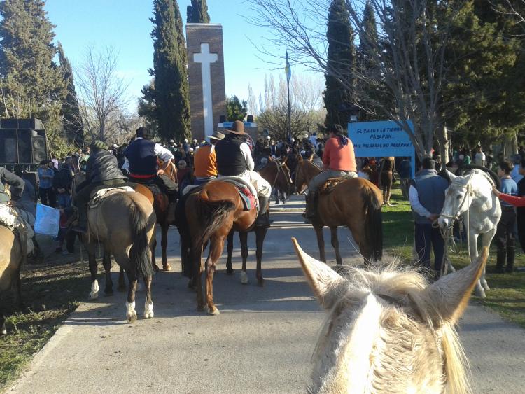 La cabalgata es eso. Te guía la devoción por el santo Ceferino pero en el camino te une la mistad. Y desde el lomo del caballo vas compartiendo, anécdotas, podes hablar de política o de los temas más remotos. Hay mucho tiempo para conversar con los de tu grupo y con los demás jinetes que van para Chimpay.