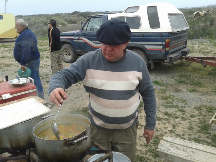 Un viaje a caballo de casi 160 kilómetros, desde Allen a Chimpay, demanda varias reuniones previas de organización. En un cuaderno el cocinero del equipo somete a votación el menú para cada cena y almuerzo porque la comida es muy importante para no perder las energías. El almuerzo tiene que ser un plato que se coma casi al paso porque no se puede perder el ritmo de la cabalgata pero no hay cena sin disco, parrilla oi un asador bien plantado.