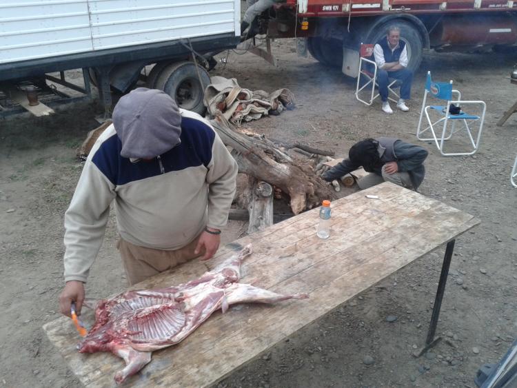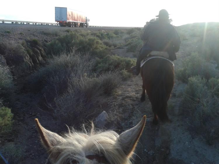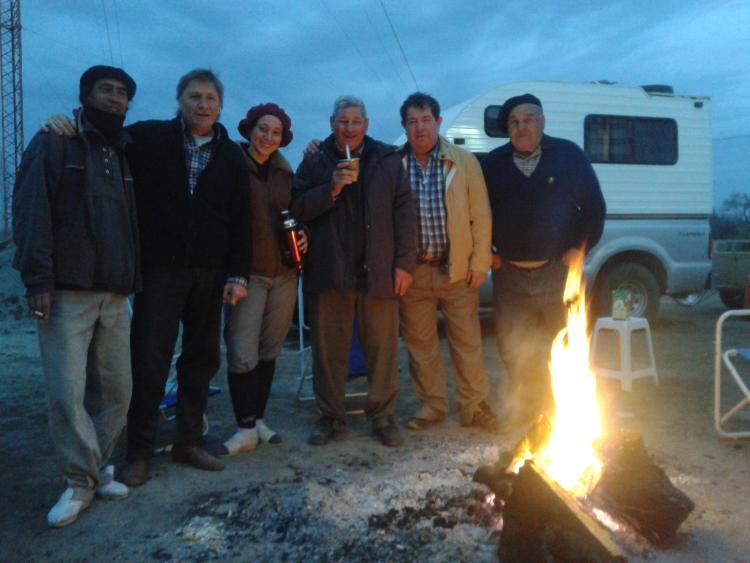 Chichinales es para los jinetes un oasis en el camino. Esa ciudad abre el polideportivo para los peregrinos y te recibe con duchas calientes y toda la hospitalidad pueblerina. La noche de Chichinales tiene una peña con bailarines, guitarreros y cantores que ensalzan la noche con folclore. Nosotros tenemos nuestro crédito local que cada vez que canta se lleva los aplausos de todos. El “matungo” Ruiz es el camionero del grupo, el que traslada toda la logística de la cabalgata, desde el pasto para los animales hasta cada hasta cada cosa que se necesita para armar el campamento.