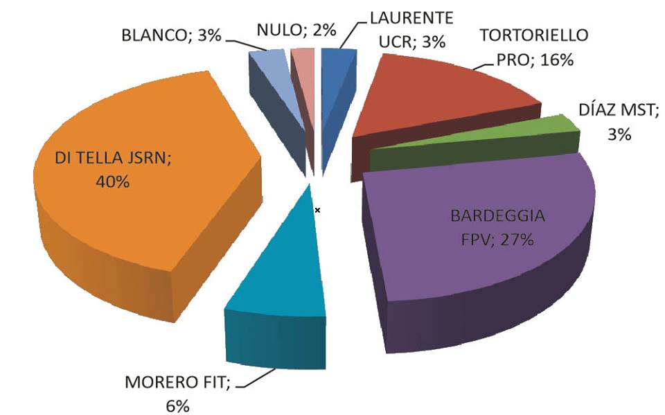 Claudio Di Tella fue el elegido en esta zona, y Luis Bardeggia, de la mano del FpV quedó segundo. Tortoriello resultó tercero.