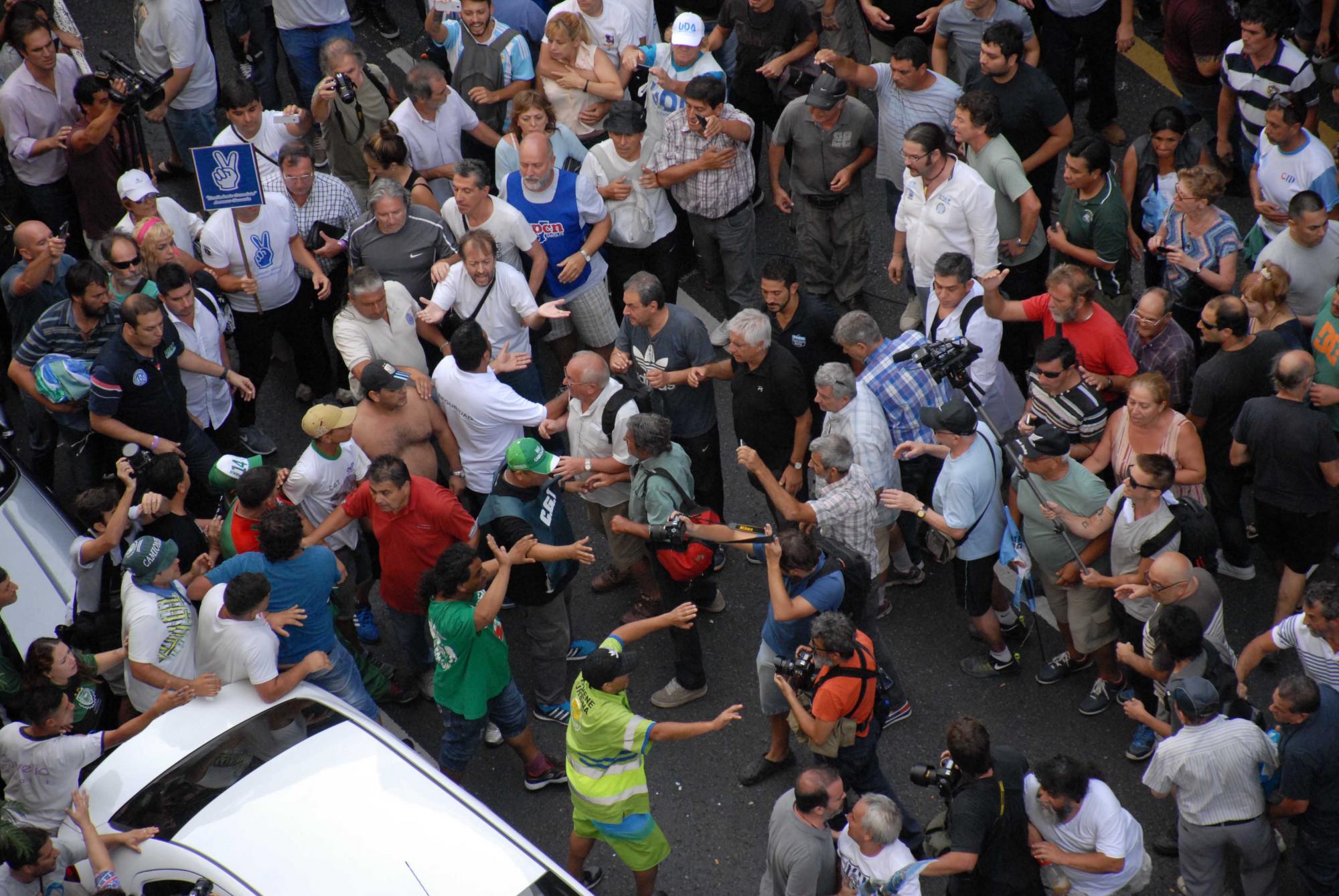 Los dirigentes del Consejo directivo de la CGT debieron soportar abucheos y el grito de “paro general” de los presentes, cuando se bajaron del palco y debieron refugiarse en la sede del gremio mercantil. El acto, si bien estaba previsto para las 16, se adelantó una hora para evitar desbordes, pero hubo incidentes.