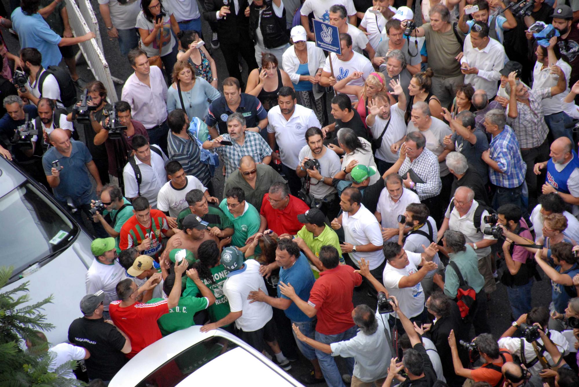 “Traidores”, “pone la fecha” de la medida de fuerza, fue el grito con el que respondieron a los dirigentes, varios de los cuales ingresaron custodiados al gremio de los empleados de comercio, que encabeza Armando Cavalieri, en Avenida Diagonal Sur al 600, de esta ciudad. Otros de los referentes gremiales lograron retirarse en auto, pero todos fuertemente custodiados.