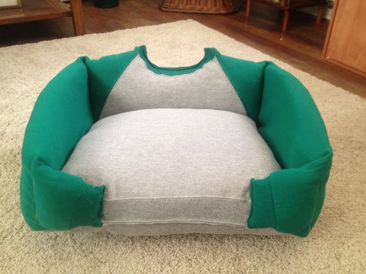 Una idea fácil. Un viejo buzo como cama para las mascotas.