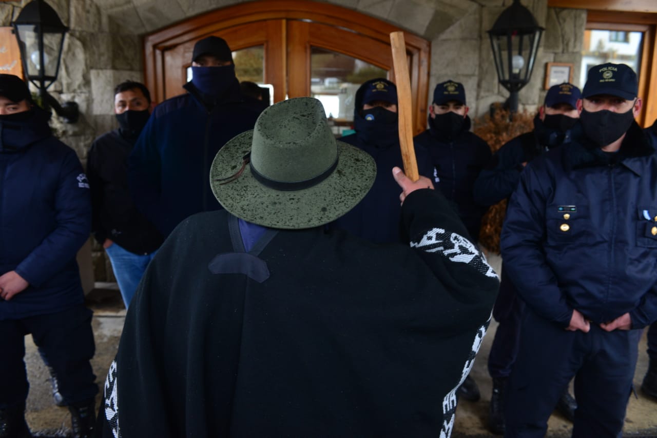 Carreras dijo que se deben buscar “soluciones” y “pacificar” la problemática de la tierra, y afirmó que le interesa que “no sea un espacio de escrache sino de propuestas constructiva. Pacificar es el gran desafío”. Mientras tanto afuera del salón se mantenía un tenso cruce y enfrentamiento verbal entre referentes mapuches y jóvenes libertarios.