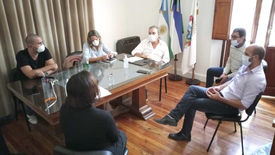 El intendente Pedro Pesatti, junto a funcionarios de su gabinete, se reunió con las autoridades de la Cámara de Comercio de la capital provincial para encontrar criterios y soluciones frente a la crisis de este sector por la pandemia del Covid 19.