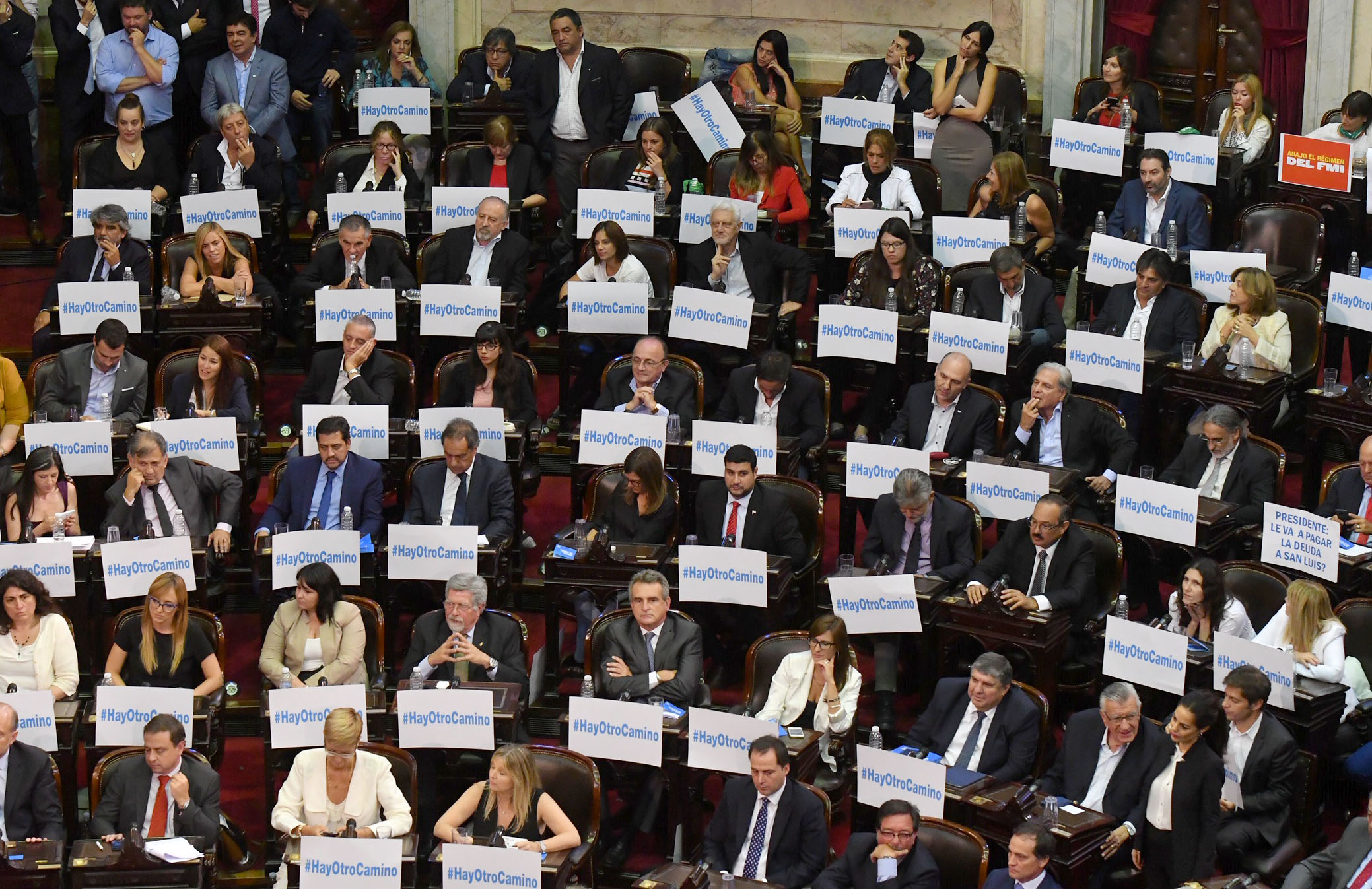 El oficialismo se levantó en pleno a aplaudirlo y el kirchnerismo mostró carteles y abucheos en su contra. La vicepresidenta Gabriela Michetti tuvo que pedir silencio en varias oportunidades.