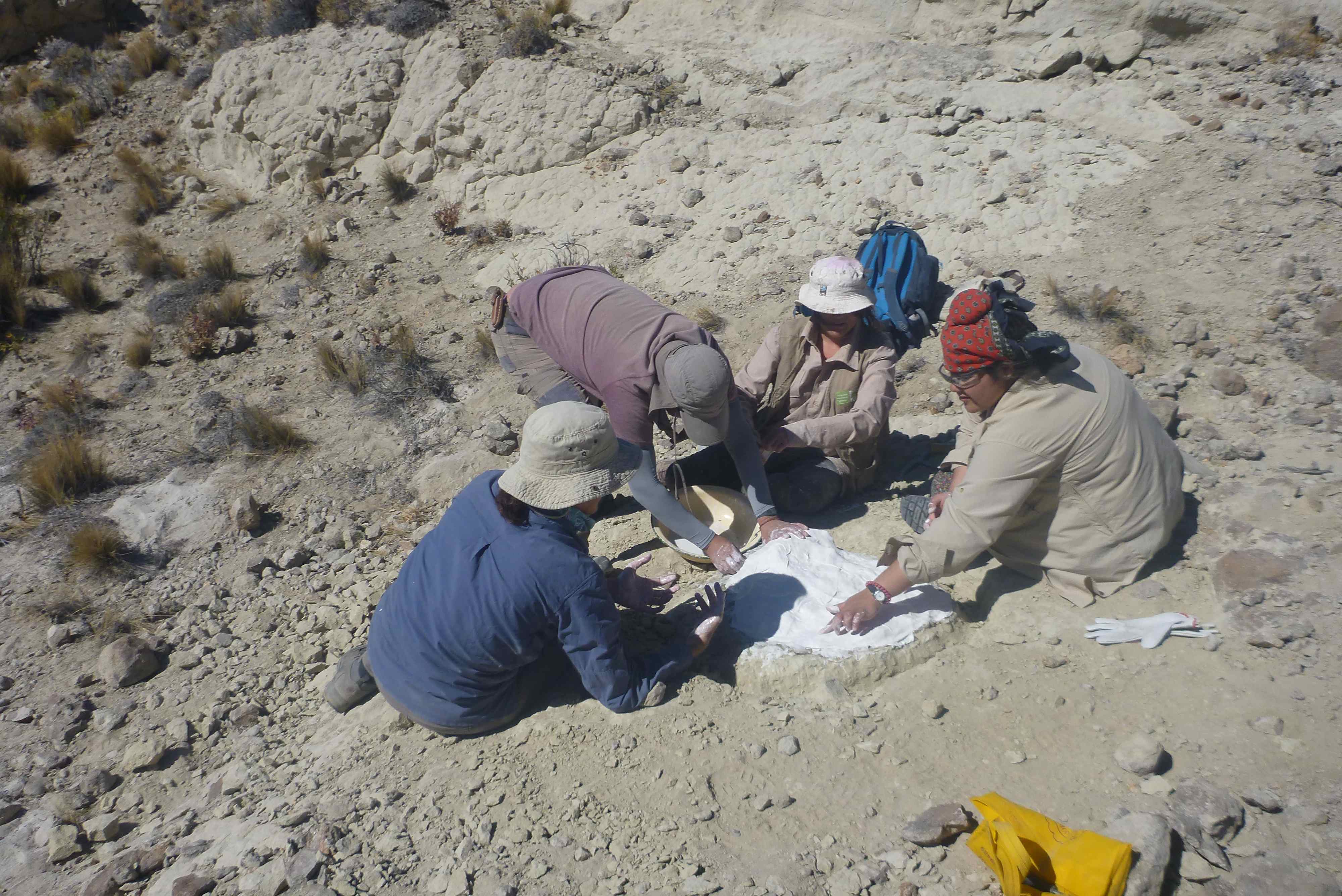 «En su gran mayoría, éramos integrantes de la asociación, estudiantes del Centro Regional Universitario que son socios y estudiantes de Paleontología de la Universidad Austral de Valdivia, Chile, que participaron de una clase de cómo hacer un rescate«, explicó el paleontólogo y aclaró que el puestero que descubrió los fósiles «tenía mucha idea respecto de la importancia del hallazgo».