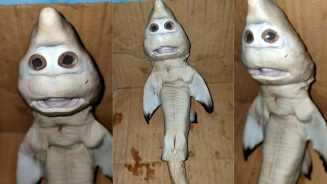Encontró una extraña cría de tiburón que dice tener «rostro humano», en Indonesia