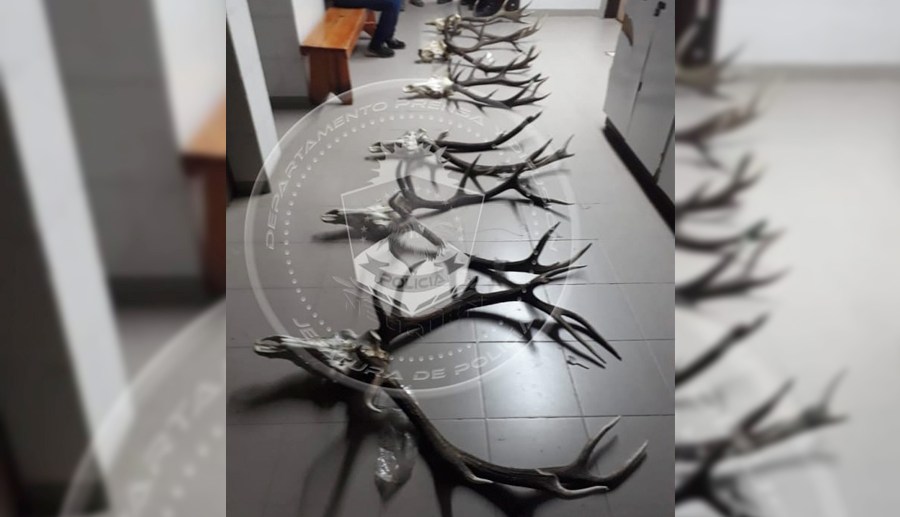 Seis cabezas de ciervo con sus respectivas astas fueron incautadas en la terminal de ómnibus de Piedra del Águila.
