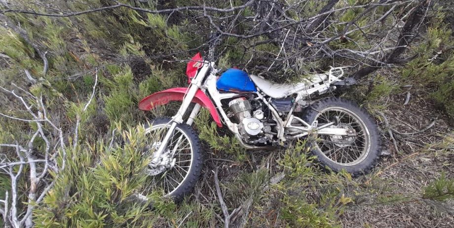 Según la descripción del portal Pehuenia Online, la moto se encontró centre Ñires, en el camino de entrada al volcán Batea Mahuida, cerca de la ruta.