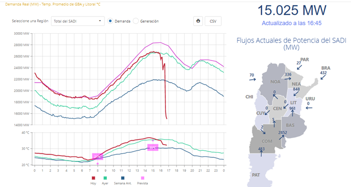 A pesar de que desde algunos medios de comunicación se ha marcado a la central nuclear Atucha 1 como la responsable del apagón generalizado que se registró poco antes de las 17, lo cierto es que la caída en la potencia del Sistema Interconectado Nacional es mucho más extensa y excede largamente a la generación que aporta esa central.