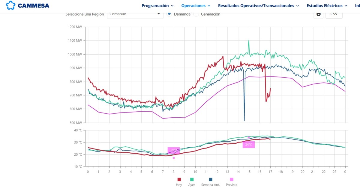 Uno de los casos más notorios se registra en la región de Cuyo , donde el servicio pasó de tener una potencia de 1.300 MW a solo 162 MW casi en el acto.