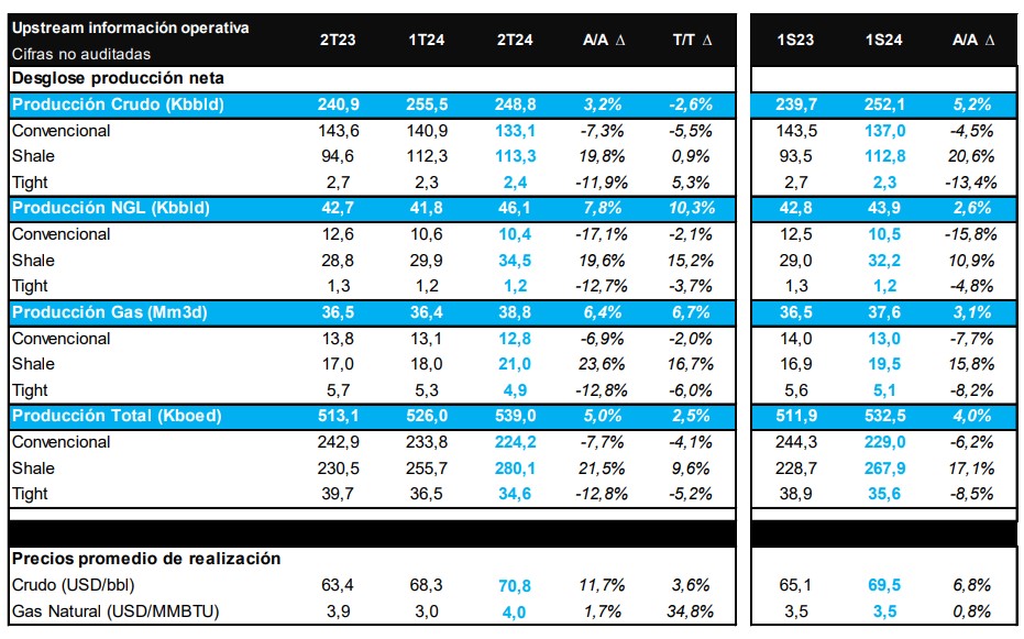 Desde la firma se destacó que el segundo trimestre del año mostró «un sólido crecimiento», y detallaron que «la producción total de hidrocarburos promedió los 539.000 barriles equivalentes de petróleo por día, un crecimiento del 2% respecto al trimestre anterior y del 5% respecto al mismo período del año anterior».