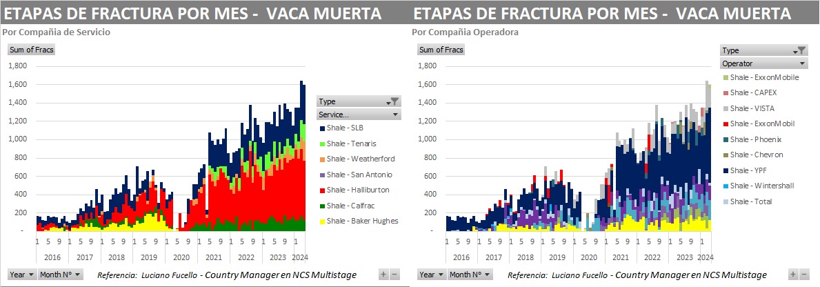 De acuerdo al informe especial que elabora el country manager de NCS Multistage, Luciano Fucello, en abril del 2024 las empresas de Vaca Muerta realizaron un total de 1.600 etapas de fractura, el mejor registro en la comparación interanual. En abril del 2023, las punciones fueron 1.168 en total, lo que representa 27% menos.