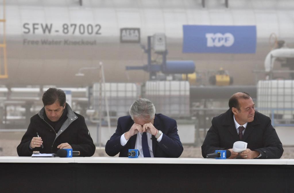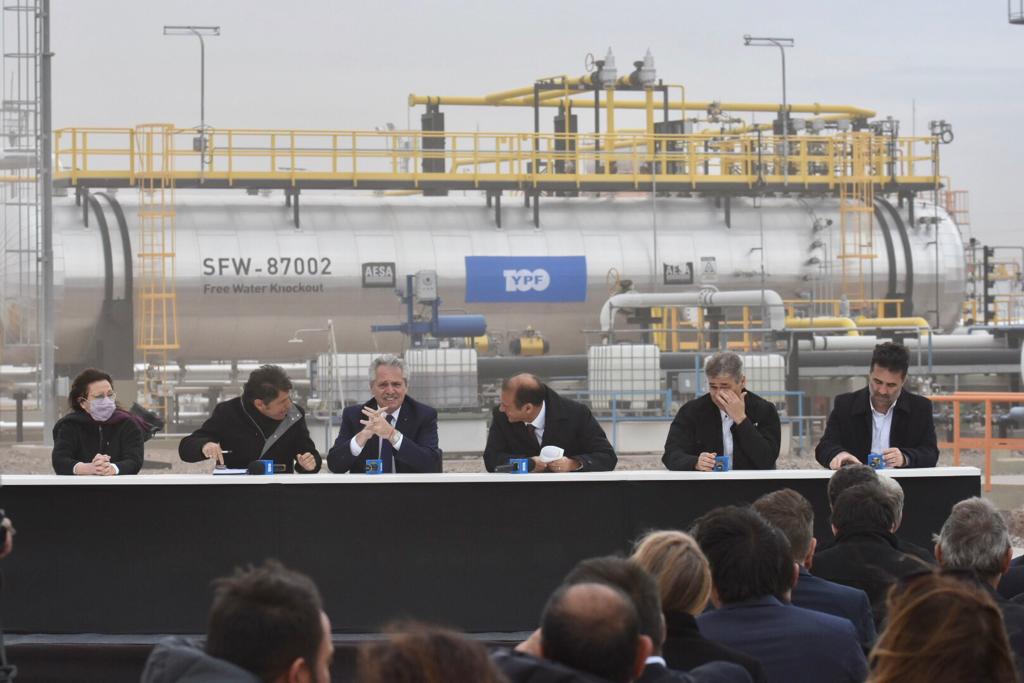En la mesa, junto a Fernández, se sentaron la directora de la Fundación YPF, Ofelia Cédola; el gobernador de Buenos Aires, Axel Kicillof; el gobernador de Neuquén, Omar Gutiérrez; el director de YPF, Pablo González y el secretario de energía de la Nación, Darío Martínez.