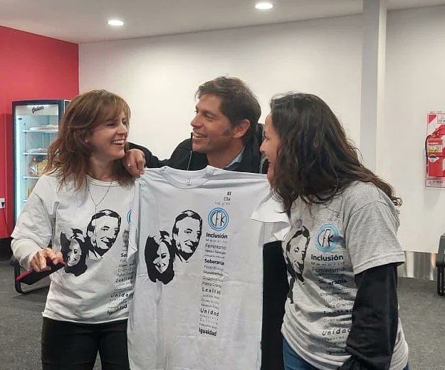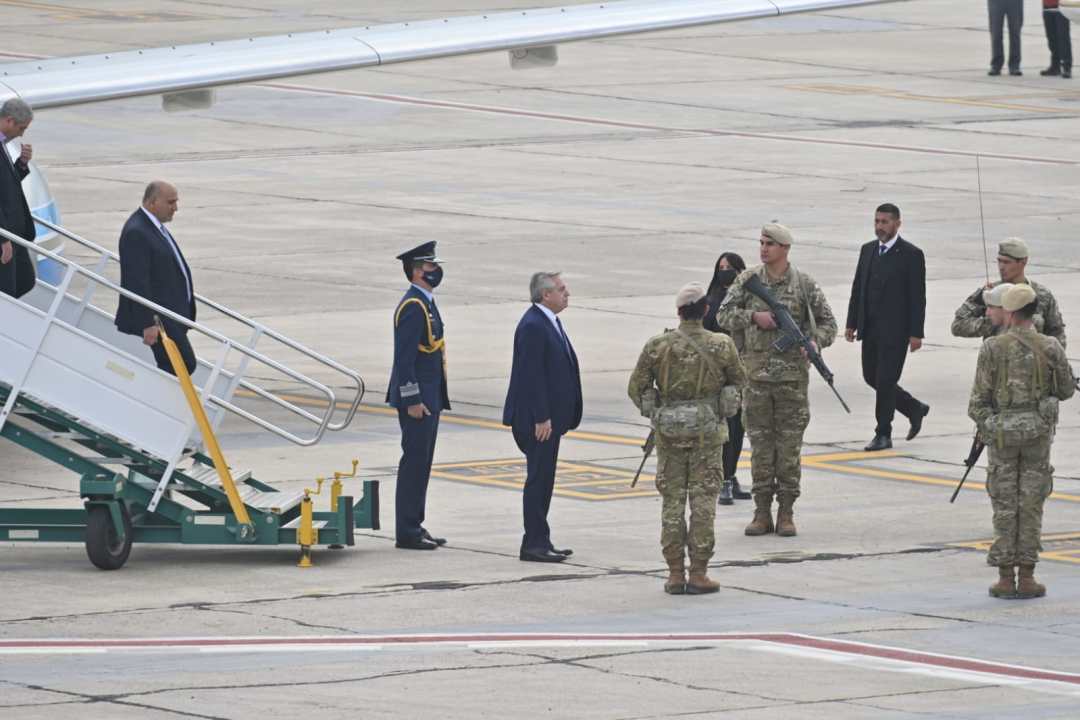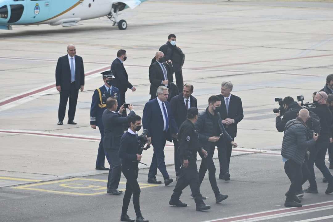 El aeropuerto era, al mediodía, el centro de la actividad oficial de hoy. Antes de la llegada del presidente se anunció el arribo del gobernador de Buenos Aires, Axel Kicillof. La diputada provincial Lorena Parrilli publicó fotos con el mandatario, que fue recibido por una comitiva con remeras que llevan estampadas las caras de Cristina y Néstor Kirchner.