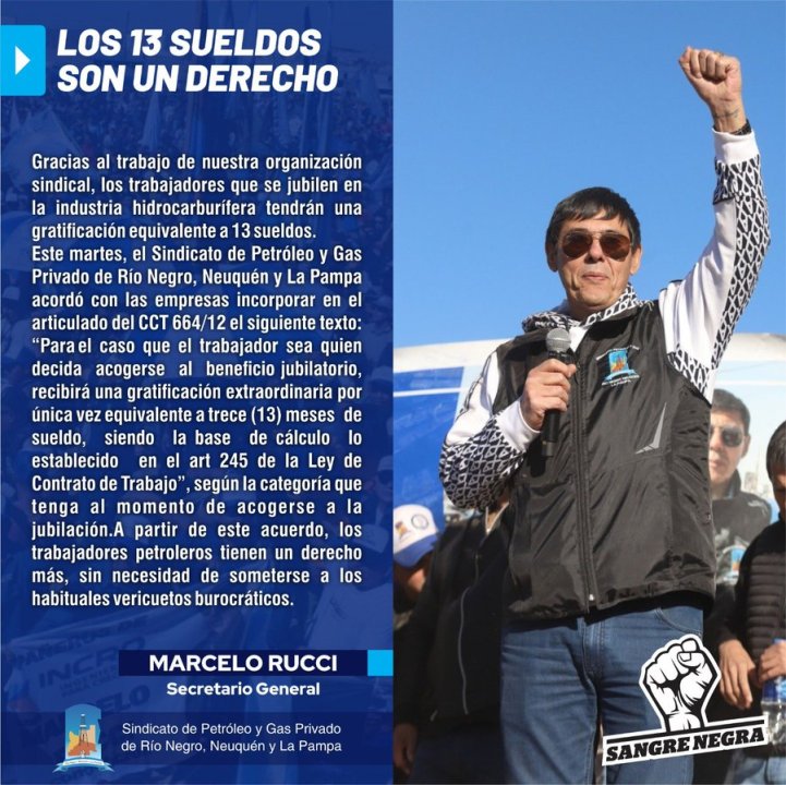 A través de un comunicado, desde la organización sindical que conduce Manuel Arévalo indicaron que este beneficio será recibido por «las y los Trabajadores Petroleros Jerárquicos al momento del cese de la actividad como Trabajador/a activo«.