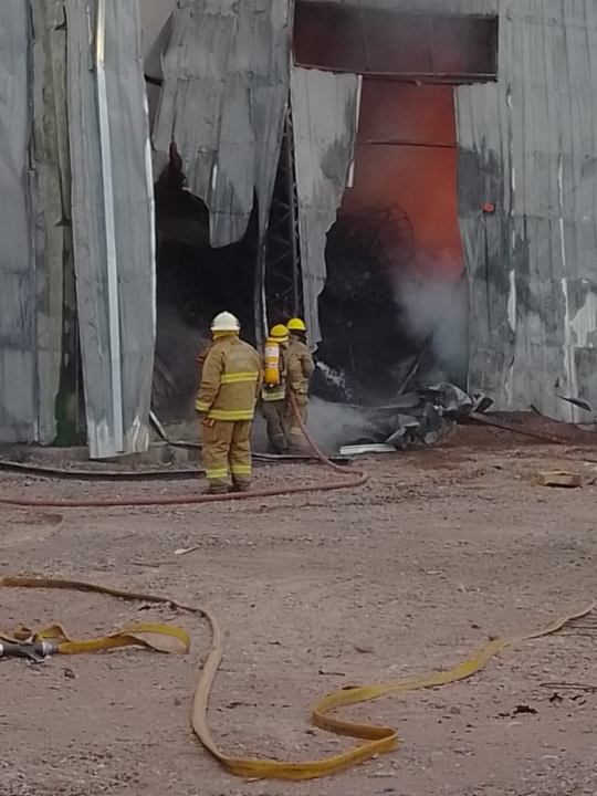 Desde los bomberos se trabajó desde la madrugada en intentar no solo extinguir las llamas, sino también en evitar que el incendio afecte otras dependencias, una tarea que a estas horas se considera lograda, ya que el titular de Defensa Civil detalló que el incendio «está controlado» aunque continúan adelante los trabajos de movimiento y enfriamiento del lugar.