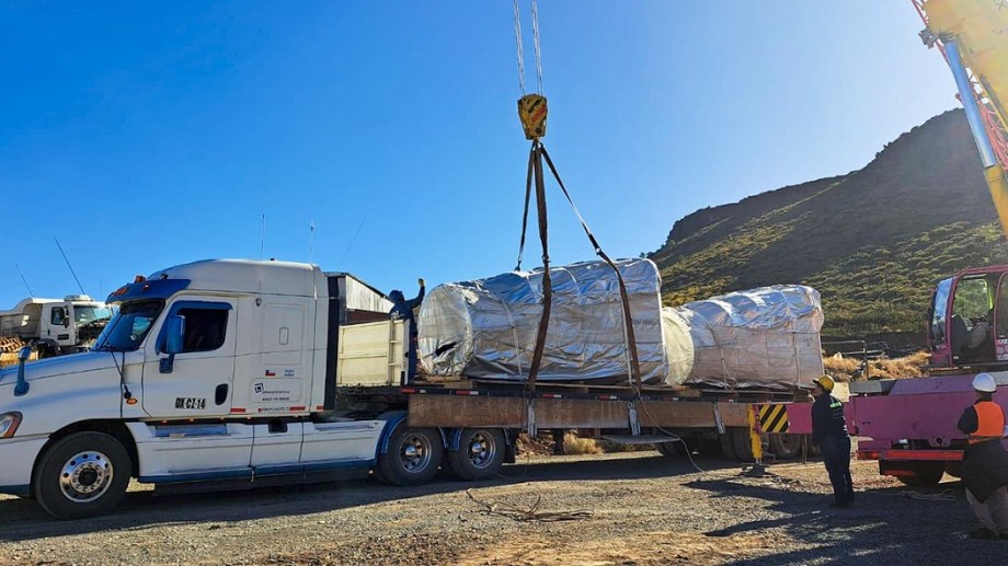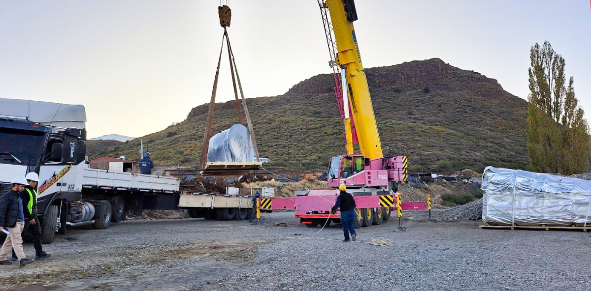 Llegaron a Nahueve las piezas clave para las turbinas de la represa, mirá las fotos