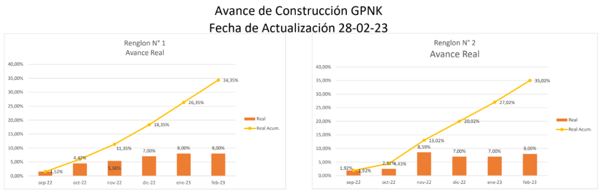 El renglón 2 mencionado en las gráficas corresponde al siguiente sector del gasoducto, que se desarrolla íntegramente en la provincia de La Pampa. En este caso las firmas constructoras son las mismas, la UTE formada por Techint y Sacde y el informe indica que al 28 de febrero los trabajos tenían un avance del 35,02%.