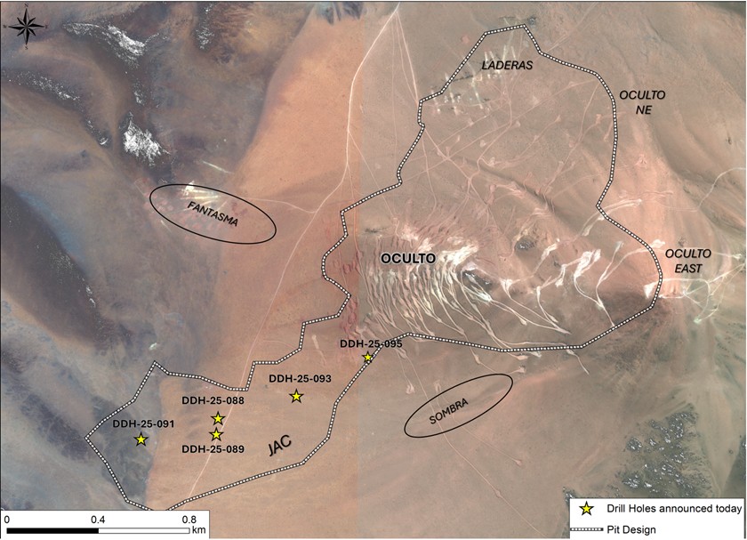 Dave O’Connor, Geólogo Jefe, comentó: “La Fase V ofreció impresionantes intervalos de mineralización aurífera que se extendieron más allá de los límites conceptuales de la mina a cielo abierto en Oculto Este, lo que subraya la solidez, la continuidad y la escala del sistema de mineralización de Diablillos. La Fase VI ha sido cuidadosamente diseñada para aprovechar este éxito: ampliando zonas mineralizadas conocidas, mejorando los recursos minerales dentro y fuera del tajo abierto existente, y probando varios objetivos de exploración de alta prioridad en todo el distrito.”