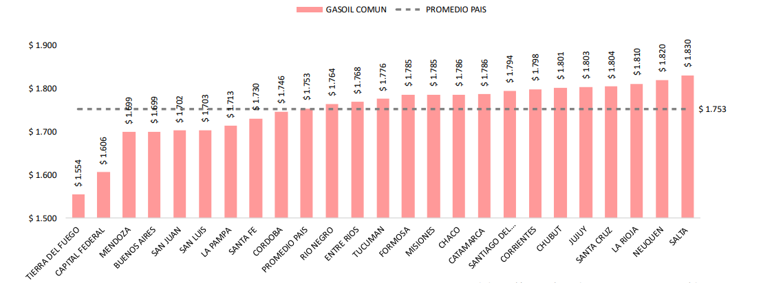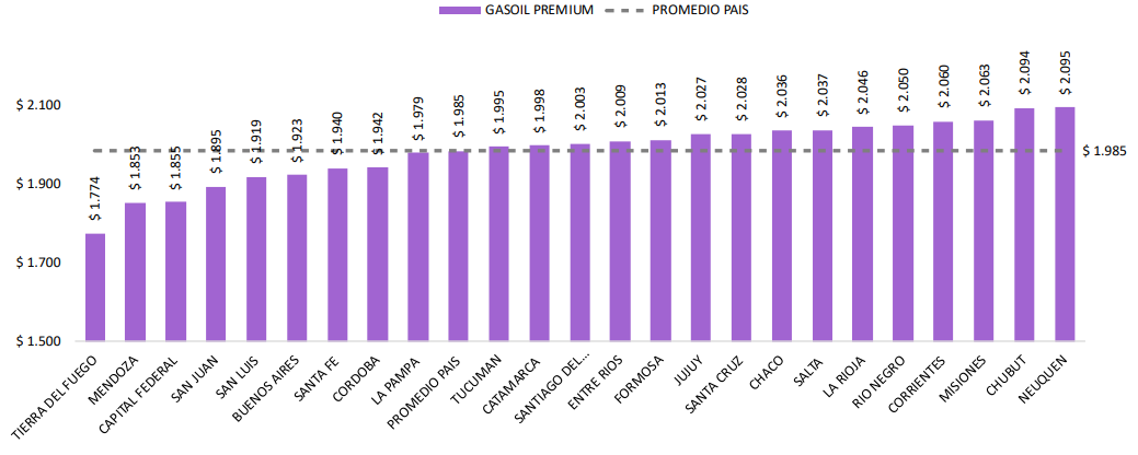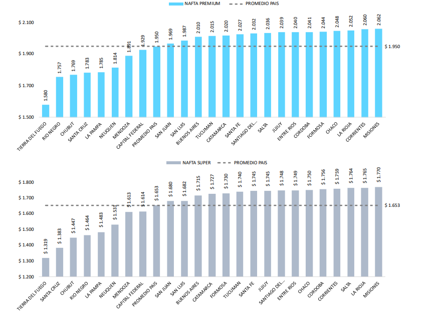 El informe también señala que el comportamiento dispar entre provincias no se limita al gasoil. En diciembre, los precios promedio nacionales fueron:  Nafta premium: $1.950 por litro, Nafta súper: $1.653 por litro. En todos los casos se observan diferencias relevantes entre jurisdicciones, aunque en este caso Neuquén aparece por debajo de los más extremo dentro del ranking, tanto en nafta super como en premium.