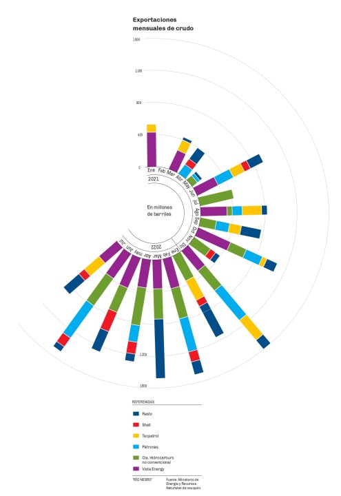 Una aclaración especial vale ser realizada antes de avanzar y es que los datos de la cantidad exacta de barriles exportados tiene una demora importante en conocerse, ya que la provincia de Neuquén los contabiliza recién cuando esa producción paga regalías y se conoce su destino.