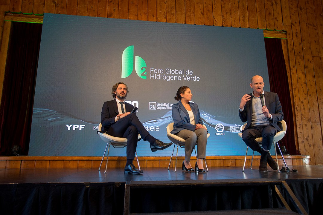 Por el Foro Global de Hidrógeno Verde, que organizó el Gobierno rionegrino, pasó la secretaria de Energía de la Nación, Andrea Royón, el ministro de Ciencia y Tecnología, Daniel Filmus, que expuso mediante videoconferencia. El ministro de Relaciones Exteriores, Santiago Cafiero, cerró esta tarde de viernes el evento, acompañado de la gobernadora Arabela Carreras, y el CEO de Green Hydrogen Organisation (GH2), Jonas Moberg.