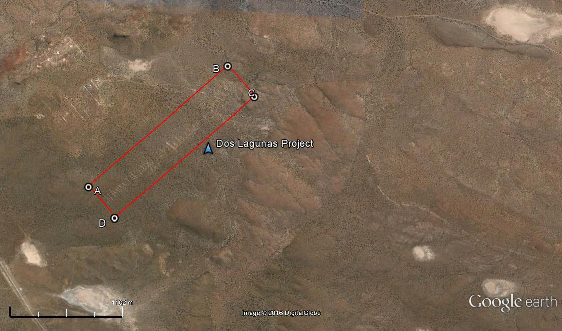 En lo que respecta al proyecto Dos Lagunas, ubicado a unos 15 Km hacia el SE de Los Menucos, en la provincia de Río Negro. La propiedad cubre una superficie de 72 has. y está registrada en la Dirección de Minería de la provincia de Río Negro bajo el expediente Nº 20180-95. Los trabajos de exploración se desarrollaron en diferentes épocas y por diferentes empresas y consistieron en mapeos geológicos de superficie, trincheras y perforaciones tanto DDH (989 m) como RC (1.020 m).
